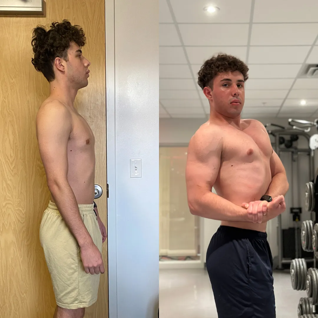 "As someone who has been skinny their whole life, I never imagined I could achieve a good, maybe even impressive physique. Oscar’s approach was completely tailored to me, my likes, dislikes, and goals. After struggling with my appetite and ability to gain weight for over a year, I gained nearly 20 pounds in 5 months with Oscar. I wish I had started sooner."